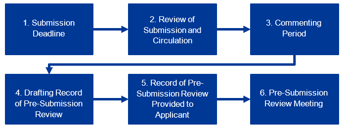 - The submitted Planning Act application must be for policy and development approvals as outlined in the Record of Pre-Submission Review.